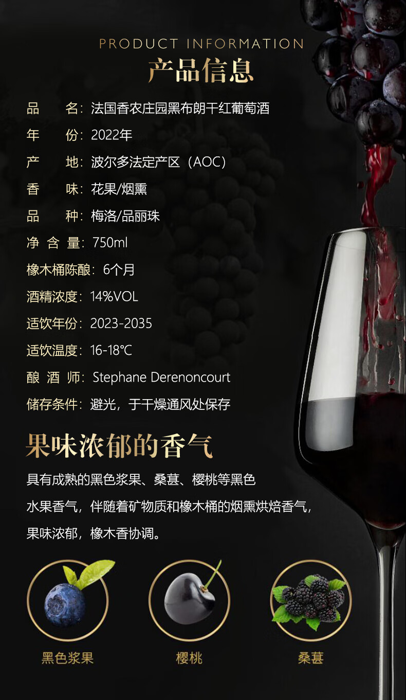 CHATEAU LOUIS【香农庄园】2022年黑布朗干红葡萄酒 法国波尔多原瓶原装进口 750ml单支装红酒