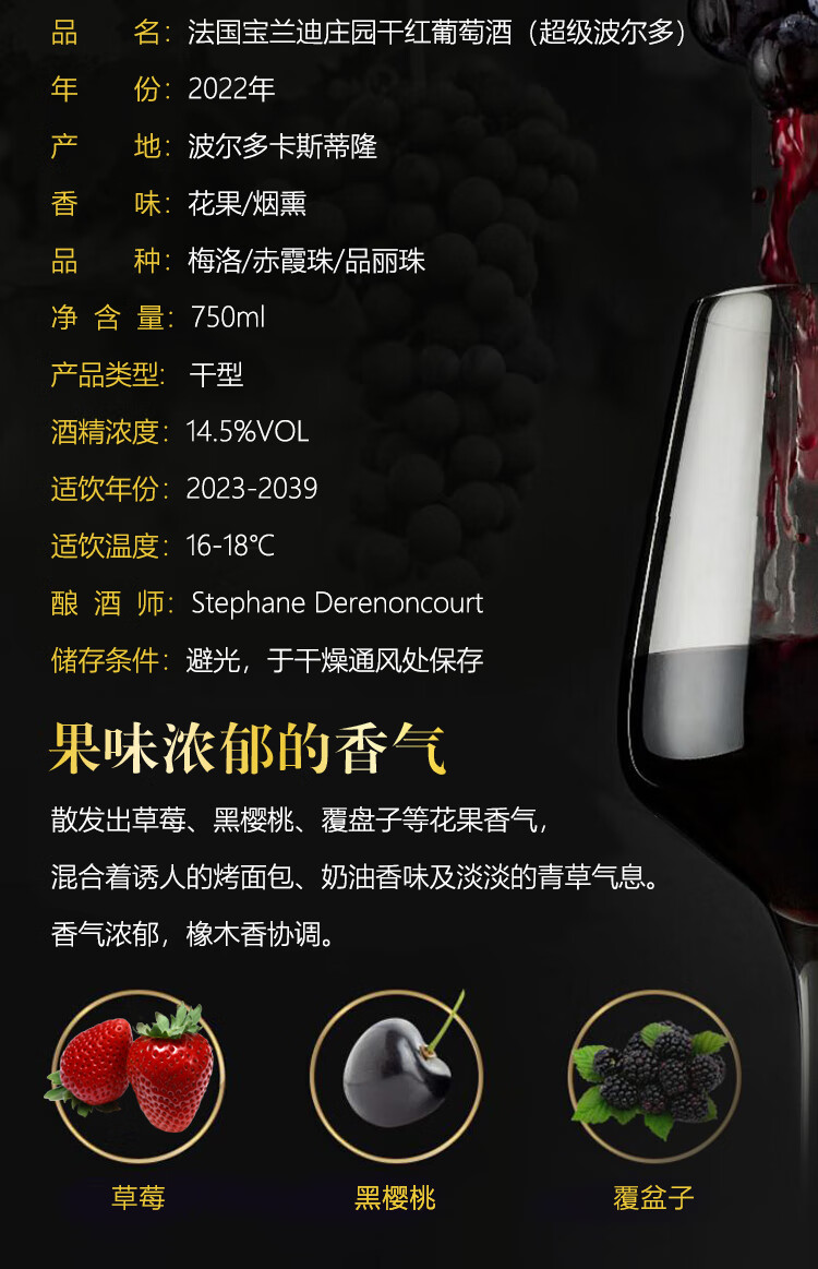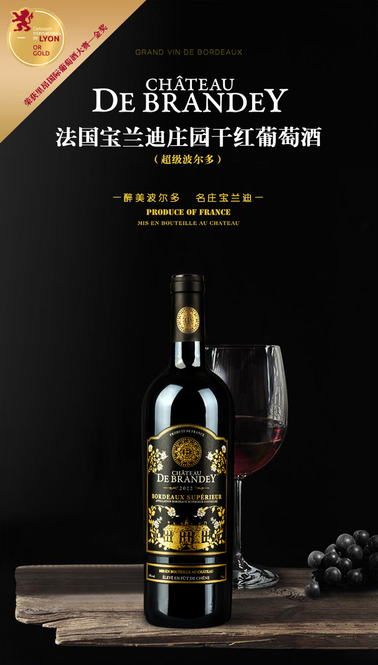 CHATEAU LOUIS【宝兰迪庄园】2022年份超波干红葡萄酒 法国波尔多原瓶原装进口 750ml单支装红酒