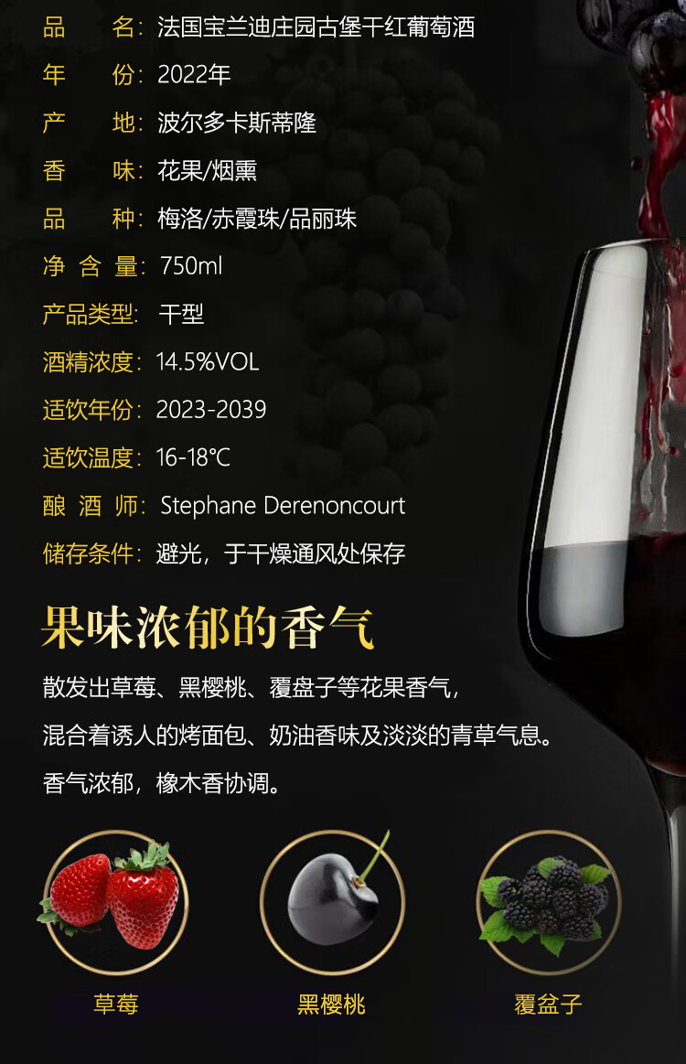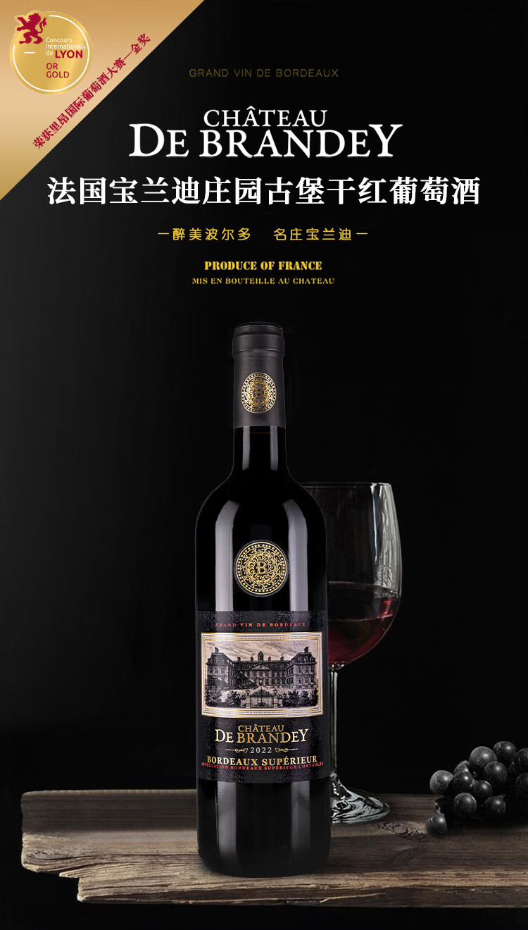 路易城堡【宝兰迪庄园】2022年份古堡 法国波尔多原瓶原装进口干红葡萄酒 750ml单支装红酒