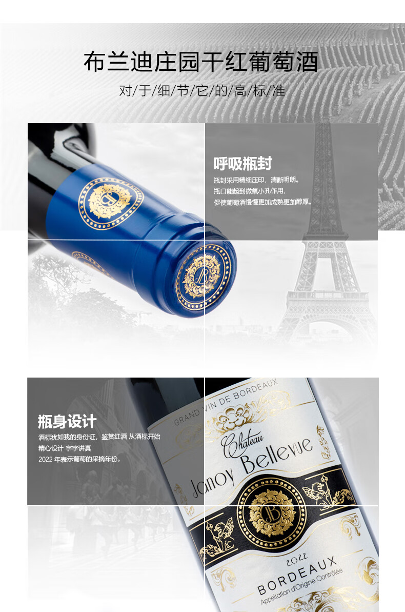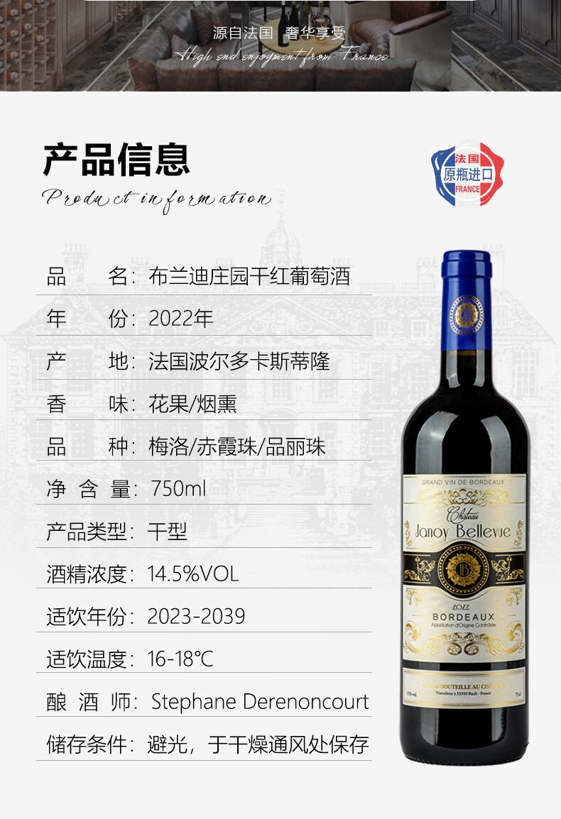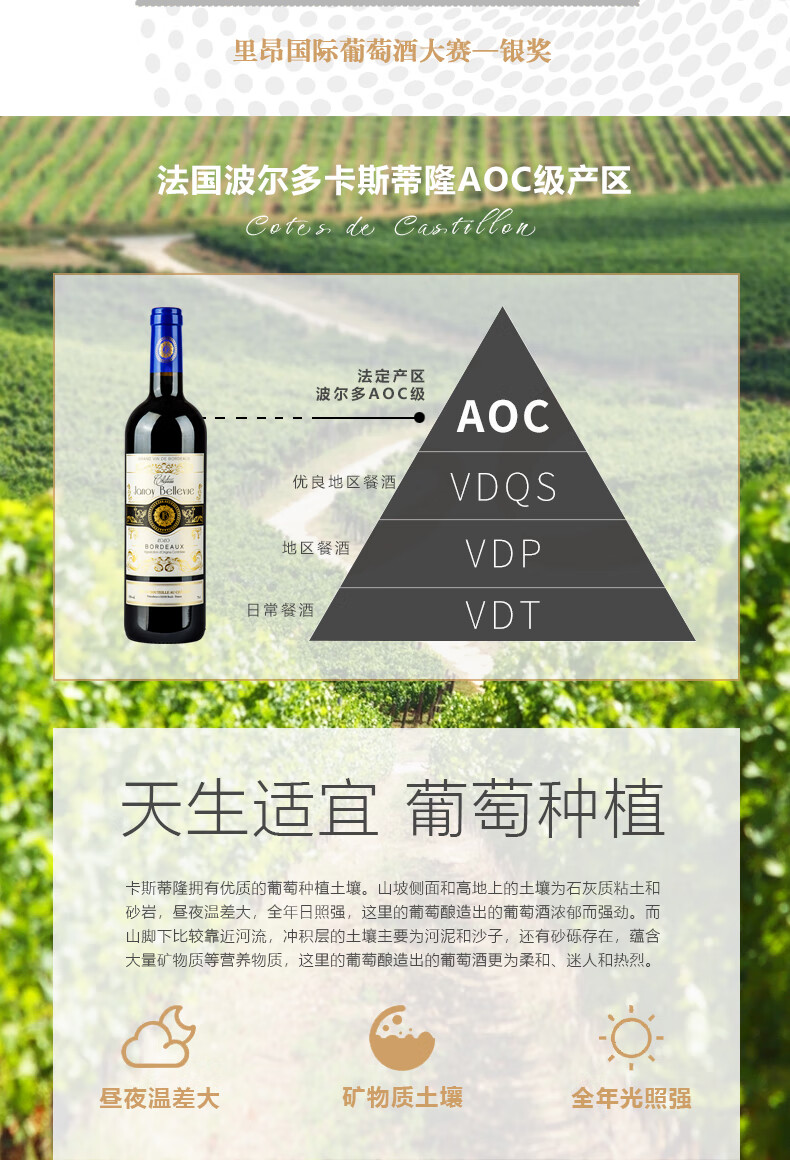 路易城堡(CHATEAU LOUIS)【法国进口红酒】2022布兰迪庄园干红葡萄酒波尔多卡斯蒂隆 750ml 单支装红酒