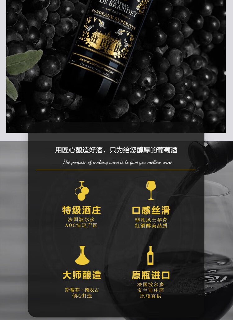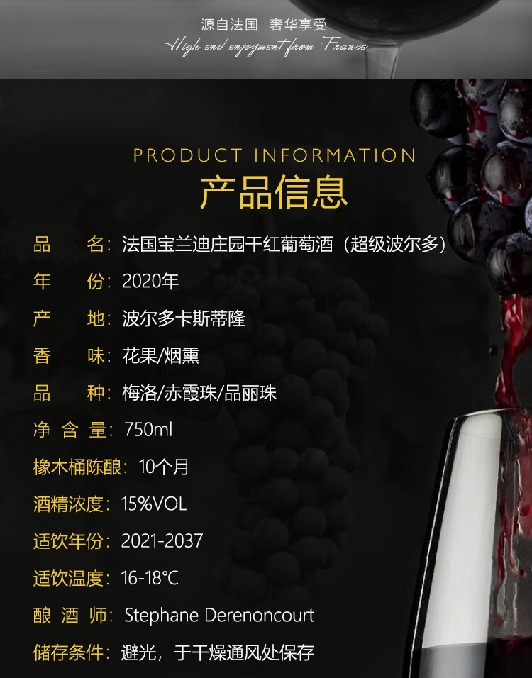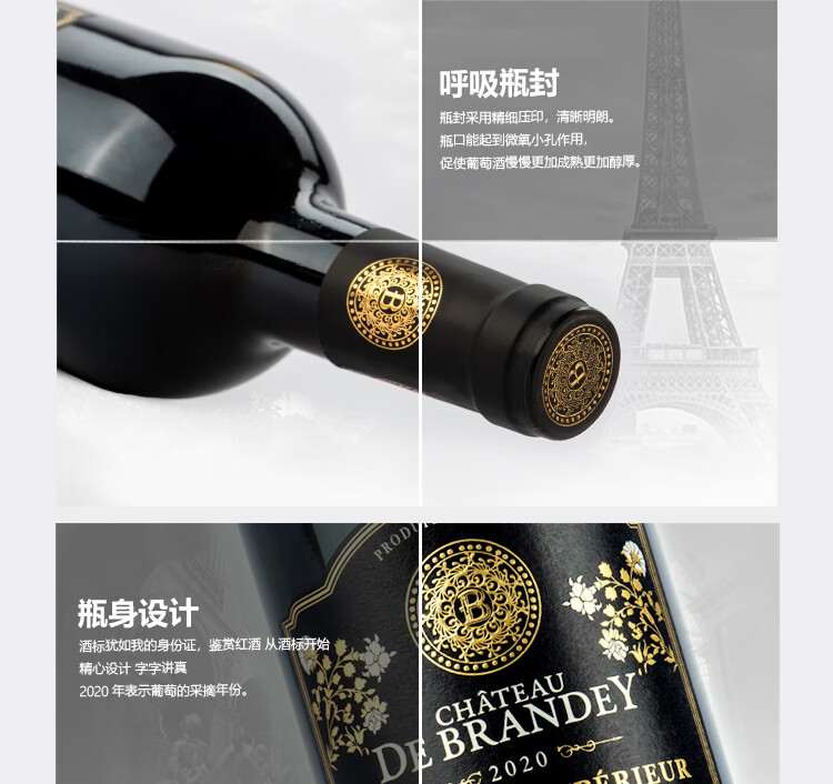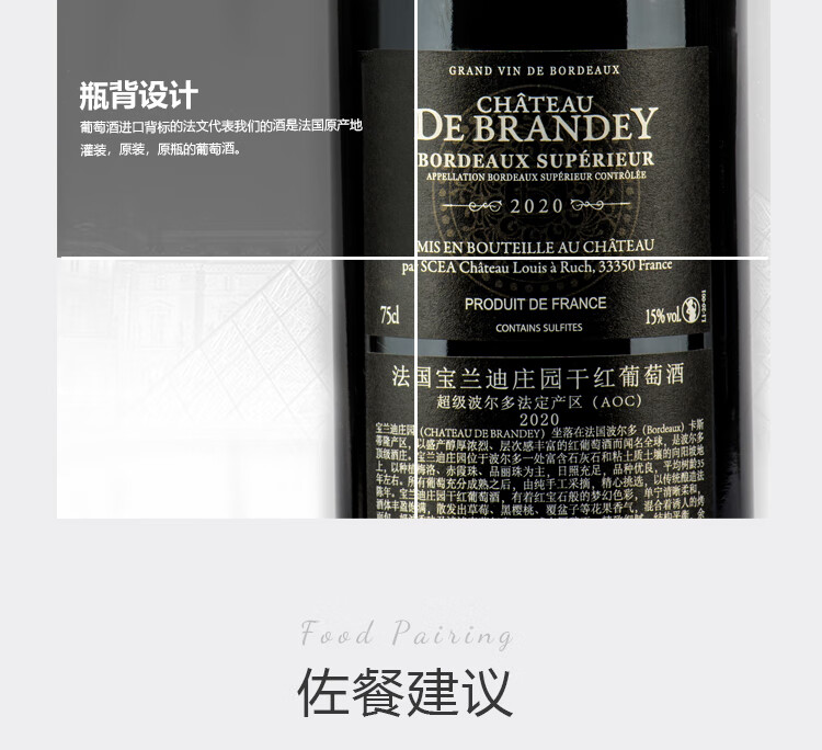 路易城堡(CHATEAU LOUIS)【法国进口红酒】2020年份宝兰迪超波干红葡萄酒 波尔多卡斯蒂隆 750ml单支装红酒