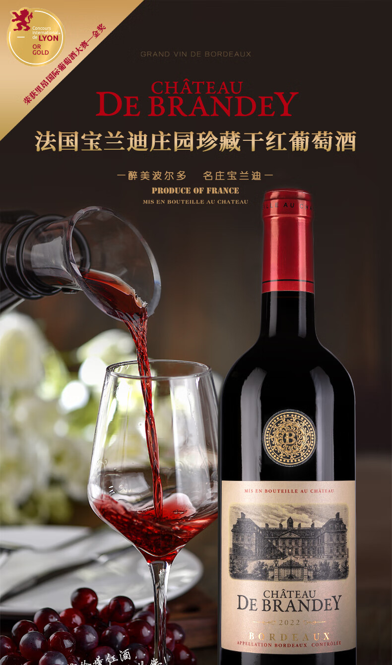 CHATEAU LOUIS【宝兰迪庄园】2022年份珍藏干红葡萄酒 法国波尔多原瓶原装进口 750ml单支装红酒
