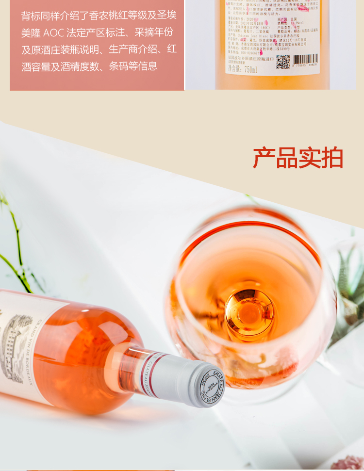 路易城堡(CHATEAU LOUIS)2020年 香农庄园桃红葡萄酒 法国波尔多圣埃美隆原瓶原装进口 单支装红酒