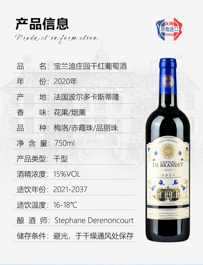 宝兰迪庄园2020干红葡萄酒
